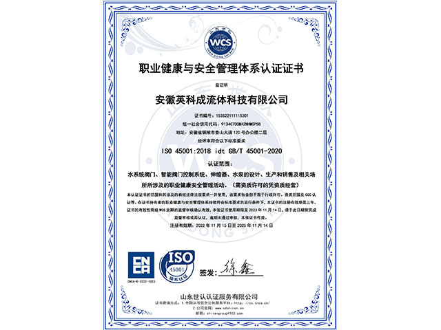 安徽英科成流體科技有限公司位于黃山腳下長江之濱的中國古銅都-安徽省銅陵市。公司注冊資金1.1億,是國內一家專業(yè)致力于給排水行業(yè)系統(tǒng)解決方案、閥門以及智能閥門技術研發(fā)與生產(chǎn)銷售服務為一體的企業(yè)。 我們擁有完善的質量控制體系和檢測設備,公司主要的產(chǎn)品有閘閥、蝶閥、偏心半球閥、液控蝶式止回閥、靜音止回閥、橡膠瓣止回閥、活塞式流量調節(jié)、錐型閥、節(jié)能型泵控閥、倒流防止器、減壓閥、排氣閥、排泥閥、伸縮器、閘門、啟閉機等二十多個系列,可以充分滿足客戶的一站式需求。……